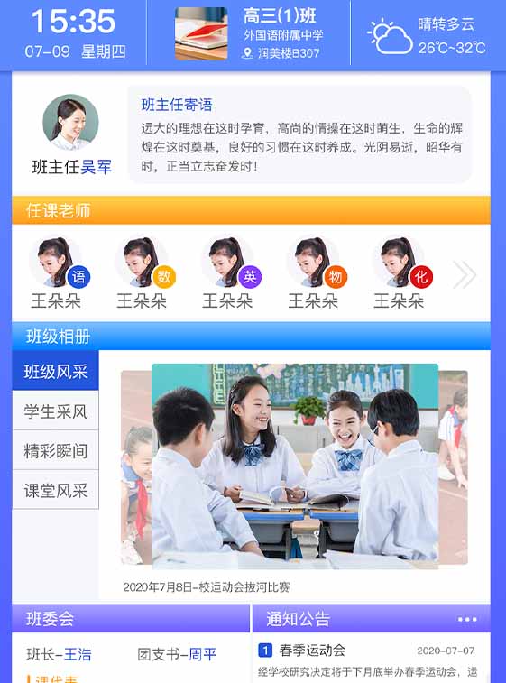 智慧班牌是為了能夠加強(qiáng)班級(jí)文化建設(shè)和班級(jí)風(fēng)采展示,是專門(mén)為學(xué)校打造的一款關(guān)于班級(jí)文化展示的信息化產(chǎn)品,是專為老師、家長(zhǎng)、孩子所打造的一個(gè)學(xué)習(xí)成長(zhǎng)交流服務(wù)平臺(tái)。